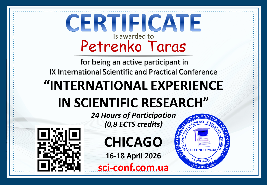 Статьи участников будут опубликованы в сборнике с присвоением ISBN 978-1-73981-121-1 и УДК, выходные данные г. Чикаго, США, выпуск в электронном варианте (Conference PROCEEDINGS) будет доступен на нашем сайте не позднее 28 апреля 2026 года.