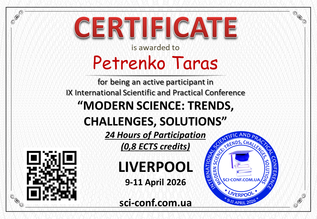 Статьи участников будут опубликованы в сборнике с присвоением ISBN 978-92-9472-191-4 и УДК, выходные данные г. Ливерпуль, Великобритания, выпуск в электронном варианте (Conference PROCEEDINGS) будет доступен на нашем сайте не позднее 21 апреля 2026 года.