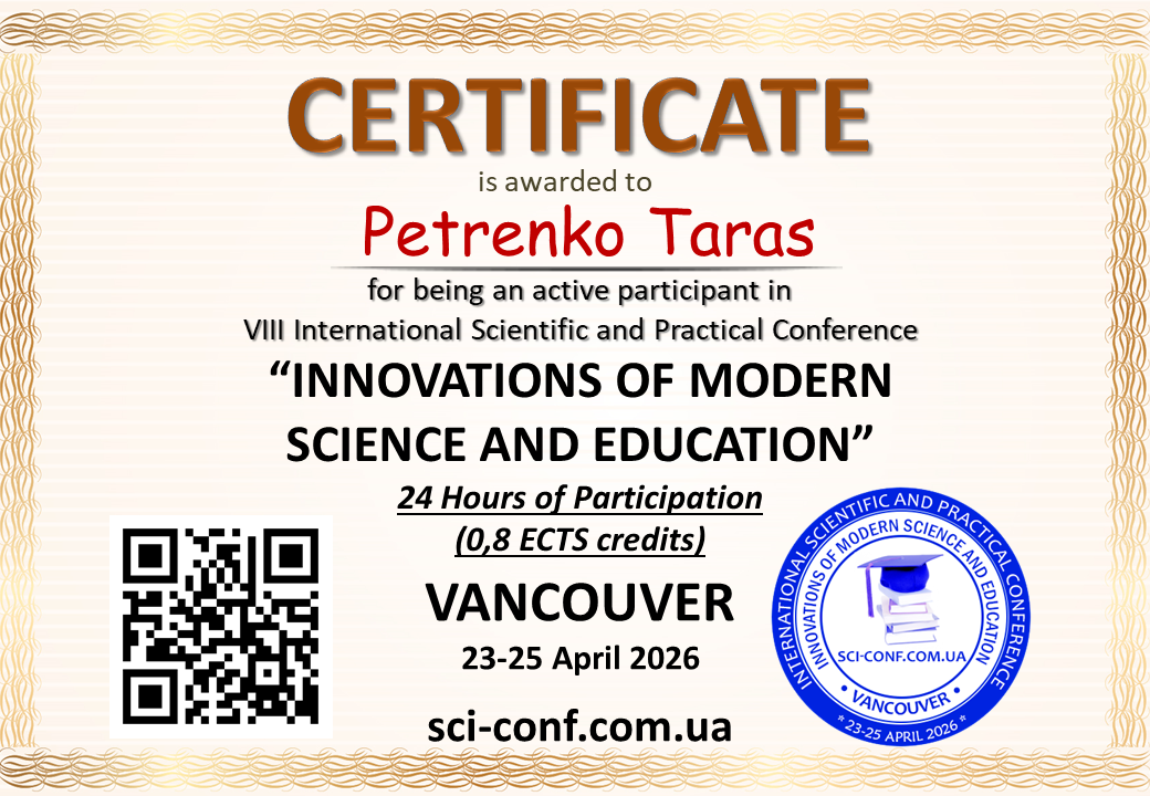 Статті учасників будуть опубліковані у збірнику із присвоєнням ISBN 978-1-4879-3796-6 та УДК, вихідні дані м. Ванкувер, Канада, випуск в електронному варіанті (Conference PROCEEDINGS) буде доступний на нашому сайті не пізніше 5 травня 2026 року.