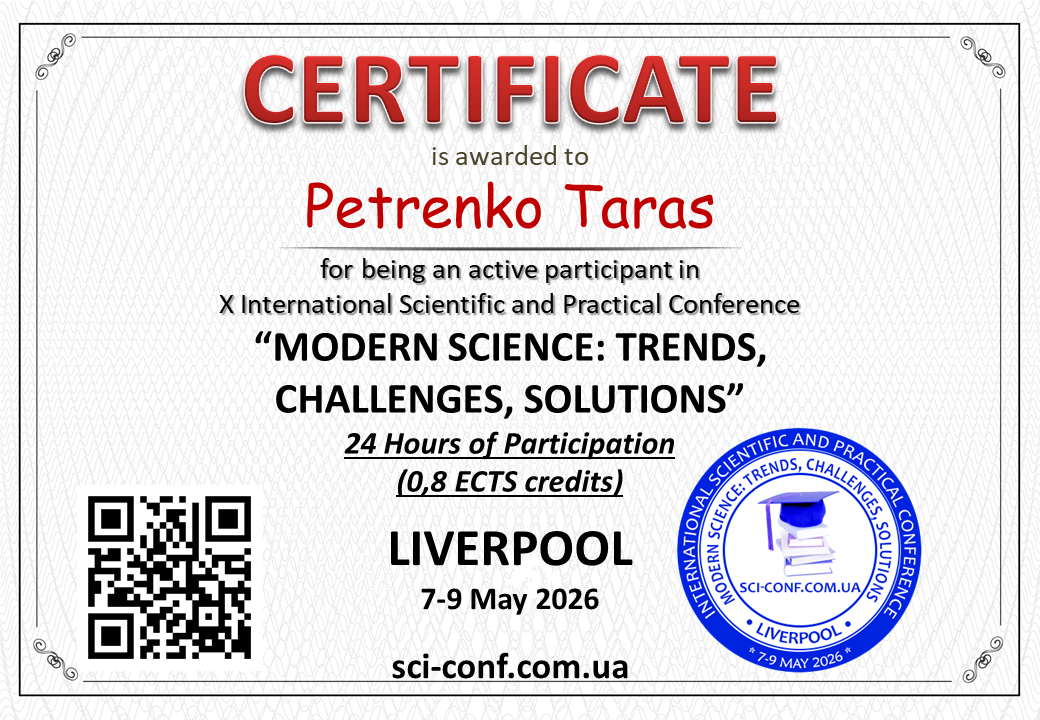 Статті учасників будуть опубліковані у збірнику із присвоєнням ISBN 978-92-9472-191-4 та УДК, вихідні дані м. Ліверпуль, Великобританія, випуск в електронному варіанті (Conference PROCEEDINGS) буде доступний на нашому сайті не пізніше 19 травня 2026 року.